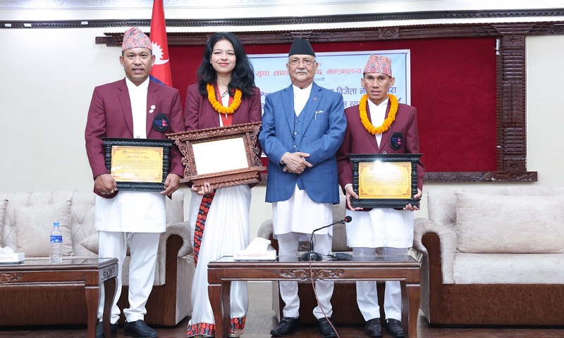 युुवा तथा खेलकुुद मन्त्रालयद्वारा प्रधानमन्त्री निवास, बालुवाटारमा आयोजित कार्यक्रममा प्रधानमन्त्री ओलीले खेलमा विजय हासिल गरेपछि खेल क्षेत्रको उत्साह कायम राख्न छिटो छिटो पुरस्कार दिने र राशिमा कर नकटाउने नीति लिइएको बताउनुुभयो । उहाँले विश्वस्तरका आगामी खेलमा नेपालले थप सफलता पाउने विश्वास व्यक्त गर्दै पलेशाले हासिल गरेको सफलता नेपालकै अहिलेसम्मको ठूलो पदक भएकाले देशले गौरव गरेको बताउनुुभयो ।