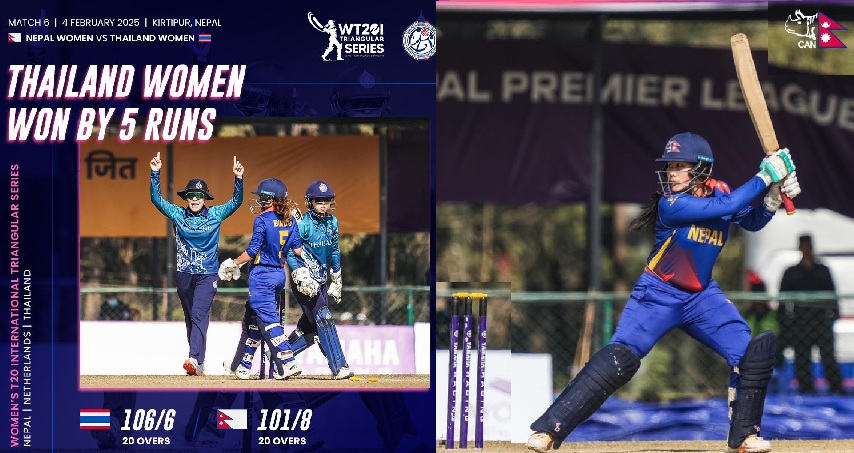 मंगलवार भएको खेलमा नेपाल थाइल्याण्डसँग ५ रनले पराजित भयो । हारसँगै नेपालको उपाधि जित्ने सम्भावना समाप्त भएको छ ।