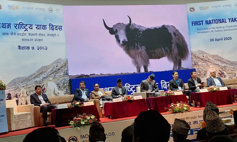 काठमाडौँ, ७ वैशाखः कृषि तथा पशुपन्छी विकासमन्त्री रामनाथ अधिकारीले याकपालनले हिमाली समुदायको आयआर्जन, खाद्य र पोषण सुरक्षा, प्राङ्गारिक खेती तथा वातावरणीय सन्तुलनमा महत्त्वपूर्ण योगदान पुर्याइरहेको बताउनुभएको छ ।