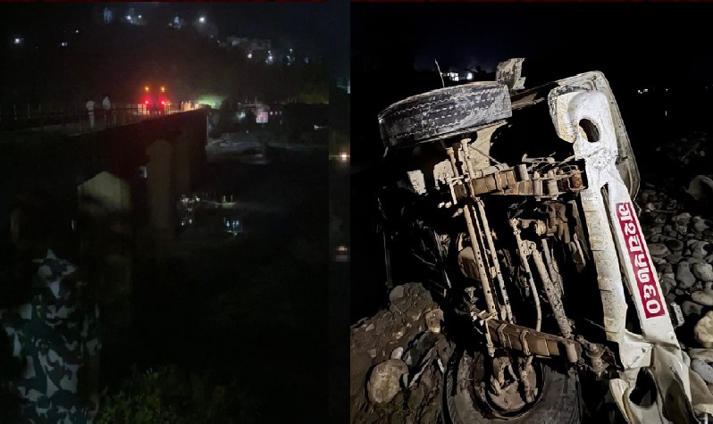 दमौलीबाट चापाघाटतर्फ जाँदै गरेको ग२च ५७६० नम्बरकोे जिप पुलको रेलिङ भत्काएर मादी नदीमा खसेको हो । जिपमा पाँच जना सवार थिए ।