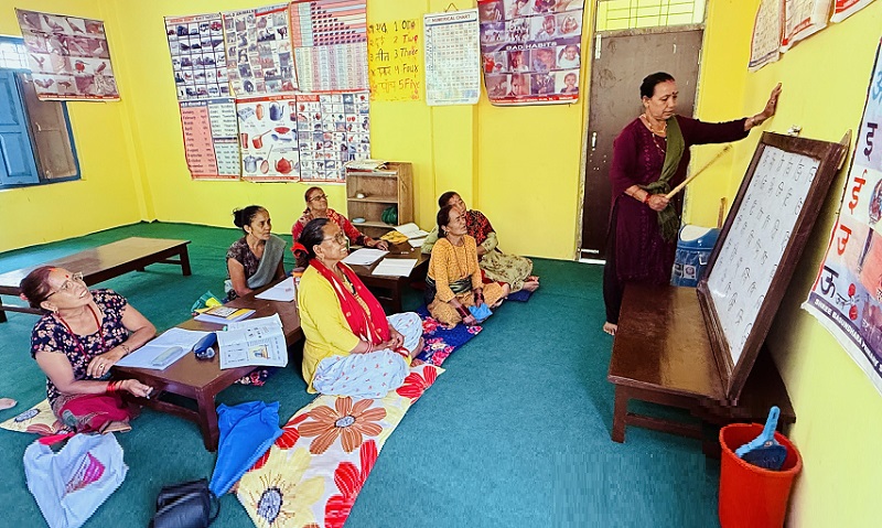 गलकोट (बागलुङ), २४ जेठः झोलामा किताब, कापी, हातमा पानीको बोत्तल । झट्ट हेर्दा नातीनातिना विद्यालय पु¥याउन आएकाजस्ता देखिने बागलुङका १० जना आमा यतिबेला आफँै कखरा सिक्दै हुनुहुन्छ ।