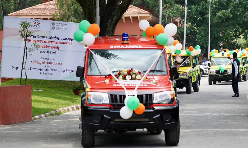 नेपाल-भारत विकास साझेदारी कार्यक्रमअन्तर्गत नेपालस्थित भारतीय दूतावासले स्वास्थ्य संस्थालाई एम्बुलेन्स हस्तान्तरण गरेको हो । भारतीय पेन्सन क्याम्प पोखराका प्रमुख प्रसान्त सिंह वगेलले एम्बुलेन्स हस्तान्तरण गर्नुभयो ।