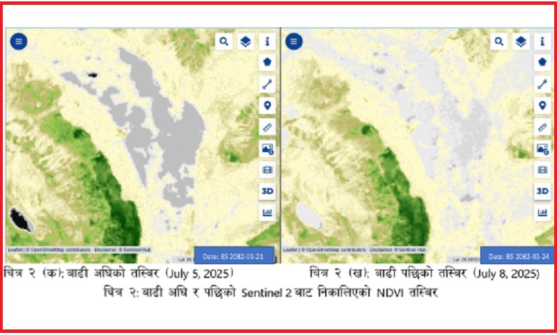 विभागले ‘सेन्टिनेल’ उपग्रहबाट गरेको अध्ययनले हिमताल फुटेर बाढी सिर्जना भएको जनाएकोे छ । विभागका बाढीविद् विनोद पराजुलीले ‘सुप्राग्लेशियल’ ताल फुट्दा बाढी आएको प्रारम्भिक अनुमान गरिएको जानकारी दिनुभयो ।
