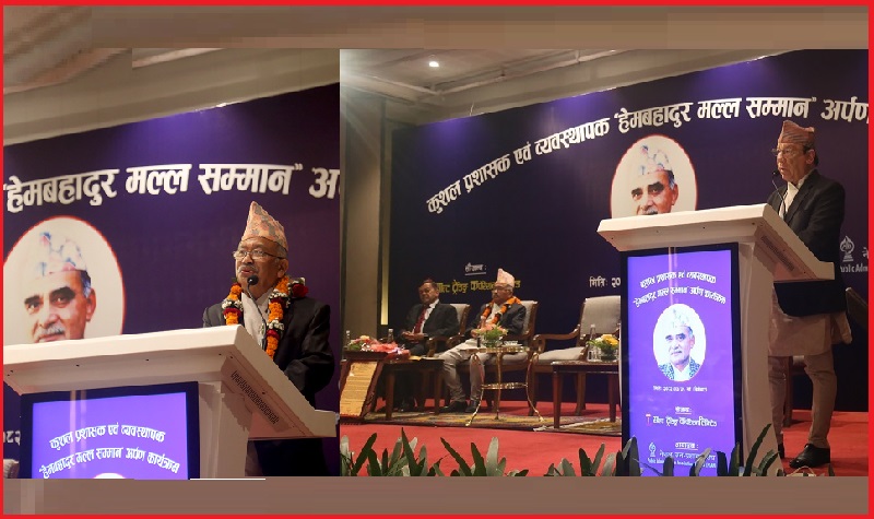 काठमाडौँ, २६ असारः साल्टट्रेडिङ कर्पोरेसनका संस्थापक स्व हेमबहादुर मल्लको सम्मानमा स्थापना गरिएको ‘हेमबहादुर मल्ल सम्मान २०८०’ पूर्वप्रधानन्यायाधीश कल्याण श्रेष्ठलाई प्रदान गरिएको छ । नेपाल जनप्रशासन सङ्घ र कर्पोरेशनले संयुक्त रुपमा आज आयोजना गरेको कार्यक्रममा प्रधानन्यायाधीश प्रकाशमानसिंह राउतले उहाँलाई सो सम्मान प्रदान गर्नुभएको हो ।