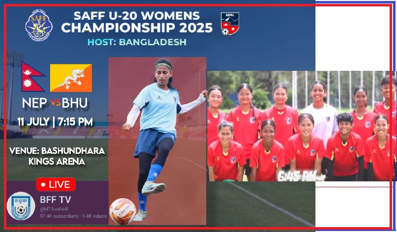 ढाका(बंगलादेश), २७ आषाढ । साफ यु २० महिला फुटबल च्याम्पियनसिप आजदेखि बंगलादेशमा सुरु हुँदै छ । आज नेपाली यु २० महिला टोली भुटानी यु २० टोलीसंग भिड्दै छ ।