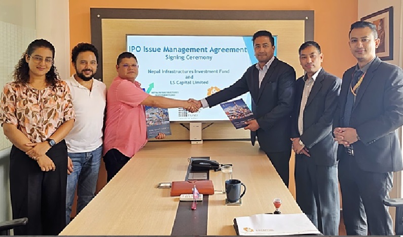 शेयर निष्काशक तथा बिक्री प्रबन्धक नियुक्ति सम्बन्धी संझौता हालै काठमाडौंमा सम्पन्न भएको छ । सो सम्झौतामा लक्ष्मी सनराइज क्यापिटल लिमिटेडका तर्फबाट प्रमुख कार्यकारी अधिकृत बिजयलाल श्रेष्ठ र नेपाल इन्फ्रास्ट्रक्चर्स इन्भेस्टमेन्ट फण्ड लिमिटेडका तर्फबाट अध्यक्ष डा. मनिष थापाले हस्ताक्षर गर्नुभएको छ ।