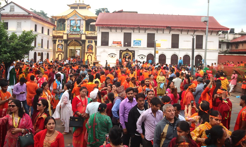 मन्दिरमा दर्शनका लागि भारतीय भक्तजनको पनि घुइँचोे छ । बिहानैदेखि पानी पर्ने रोकिने क्रमसँगै भक्तजन झरी परेका बेला छाता ओढेर पनि लाममा बसिरहेको उहाँले जानकारी दिनुभयो । यसैगरी राजधानीका अन्य शिवालय वसन्तपुरस्थित सानो पशुपतिनाथ भनेर चिनिने मक्खन महादेव मन्दिरलगायत स्थानमा पनि भक्तजनको घुइँचो छ ।