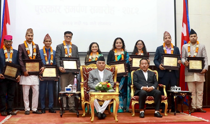 राष्ट्रपति पौडेलले राष्ट्रिय कविता महोत्सव, २०८२मा उत्कृष्ट दशभित्र पर्न सबै कविलाई सम्मानपत्र तथा पुरस्कार वितरण गर्दै बधाई तथा सृजना यात्राको उत्तरोत्तर प्रगतिको कामना गर्नुभयो ।