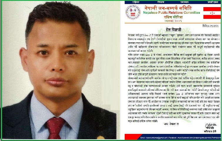 सिउल(दक्षिण कोरिया), २९ भाद्र । नेपाली जनसम्पर्क समिति दक्षिण कोरियाले हालै नेपालमा नयाँ पुस्ता जेन जीले चलाएको सामाजिक प्लेटफर्ममार्फत अभिव्यक्तिको स्वतन्त्रता, भ्रष्टाचार उन्मूलन, सुशासन, नेपालको समृद्धि र विकासका लागि आन्दोलनलाई भड्काएर देशमा मच्चाइएको विध्वंश र नेपाली कांग्रेसका सभापति शेरबहादुर देउवा र तात्कालिन परराष्ट्रमन्त्री डा.आरजू राणा देउवामा माथि गरिएको सांघातिक आक्रमणको निन्दा गरेको छ ।