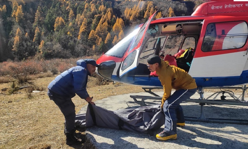 आरोहीको शव हेलिकोप्टरमार्फत सामागाउँ ल्याइएको छ । पाङबारीे हिमालबाट फर्कने क्रममा तीन इटालियन नागरिक र एक नेपाली सहयोगी गत बुधबारदेखि पहिलो शिविर र आधार शिविरमा अलपत्र परेका थिए । फरिनातो र गापुटो हिमाल आरोहण गर्न नसकेपछि फर्कने क्रममा हिमपातका कारण अलपत्र परेका बताइएको छ ।