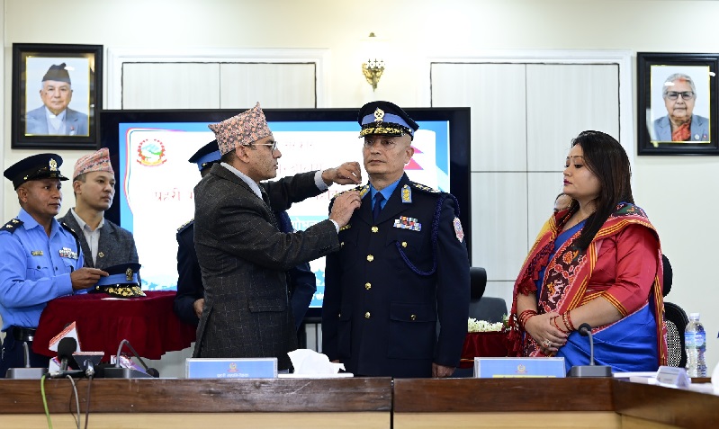 काठमाडौं, नेपाल सरकार मन्त्रिपरिषद्को २०८२ कात्तिक २४ गतेको निर्णयअनुसार प्रहरी महानिरीक्षक पदमा पदोन्नति हुनुभएका दान बहादुर कार्की दर्ज्यानी चिन्हबाट सुशोभित हुनुभएको छ ।
