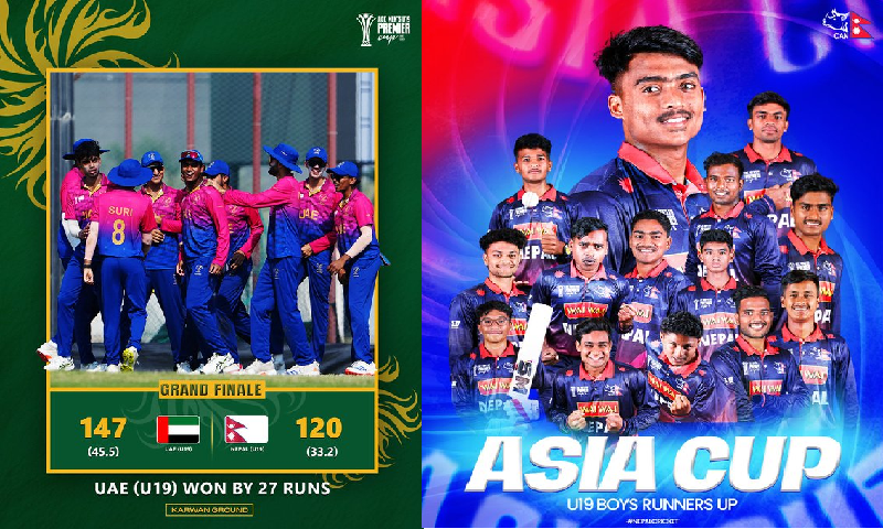 फाइनलमा युएईले दिएको १४८ रनको लक्ष्य पछ्याएको नेपाल ३३ दशमलव दुई ओभरमा १२० रनमा समेटियो । नेपालका लागि कप्तान अशोक धामीले सर्वाधिक ३४, आशिष लुहार र रोशन विश्वकर्माले समान २५/५ रनको योगदान गरे पनि जिताउन सकेनन् । युएईका युग जै शर्मा र अली असगर शम्सले तीन÷तीन विकेट हात पारे ।