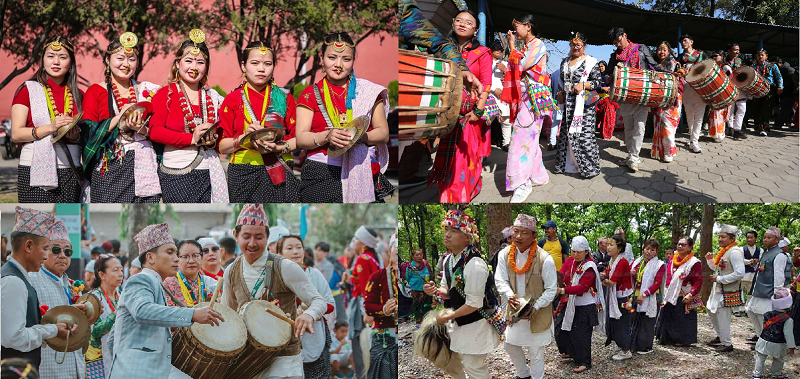 दौरा सुरुवाल र टोपीमा सजिएका युवा र गुन्युचोलो, लाछा, सिरबन्दी, चेप्टे सुन, पैसाको हारी माला, नौगेडीजस्ता गहनामा सजिएका युवतीहरू हातमा ढोल, झ्याम्टा र चम्मर बोकेर गीतमा लय मिलाउँदै नाच्न व्यस्त छन् । छातीमा पेचुरी, धजुरी, वाबु, बुन्छत र मुर्चुङ्गा झुन्ड्याएका युवायुवती ढोल झ्याम्टाको तालमा विभिन्न चराचुरुङ्गी र जीवजनावरका हाउभाउ गर्दै नाच्नेको आज लर्को छ ।