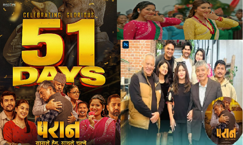 काठमाडौँ, ५ पुसः नेपाली चलचित्र ‘परान’ ले प्रदर्शनको ५१औँ दिन पूरा गरेको छ । नेपाली चलचित्र क्षेत्रमा ५१औँ दिनसम्म प्रदर्शन हुनुलाई ठूलो उपलब्धिको रूपमा लिइन्छ ।