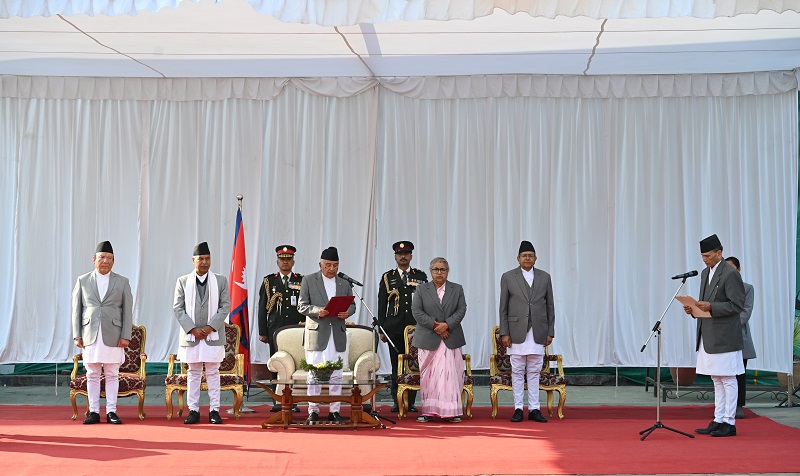 शपथ ग्रहण समारोहमा उपराष्ट्रपति रामसहायप्रसाद यादव, प्रधानमन्त्री कार्की, प्रतिनिधिसभाका सभामुख देवराज घिमिरे, प्रधानन्यायाधीश प्रकाशमानसिंह राउतसहित सरकारका उच्च पदस्थ कर्मचारी, कूटनीतिक नियोगका प्रमुख, संवैधानिक अङ्गका प्रमुखको सहभागिता थियो ।