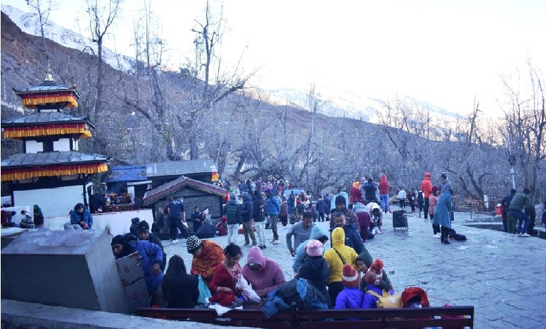 मुस्ताङ, १६ पुस : अत्यधिक चिसो हुँदा पनि मुक्तिनाथ मन्दिरमा दर्शनार्थीको भीड लागेको छ । समून्द्री सतहबाट तीन हजार ८०० मिटर उचाइमा रहेको हिन्दू तथा बौद्धधर्मालम्बीहरुको प्रसिद्ध धार्मिक तीर्थस्थल मुक्तिनाथमा चिसोमा पनि दर्शनार्थीको सङ्ख्या नघटेको मुक्तिनाथ विकास समितिका कार्यालय व्यवस्थापक दिनेश भुसालले जानकारी दिनुभयो । अघिल्लो वर्षमा चिसो बढ्न थालेसँगै दर्शनार्थी घट्ने गरे पनि यस वर्ष भने यहाँ आउनेहरु नघटेको उहाँको भनाइ छ ।