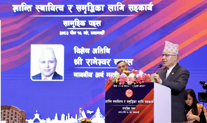 नेपाल उद्योग वाणिज्य महासङ्घद्वारा आज यहाँ आयोजित ‘शान्ति स्थायित्व र समृद्धिका लागि सहकार्य–सामूहिक पहल’ विषयक कार्यक्रममा अर्थमन्त्री खनालले जेनजी प्रदर्शनका क्रममा निजी क्षेत्रले पनि ठूलो क्षति व्यहोरेको उल्लेख गर्दै अर्थमन्त्री खनालले निजी क्षेत्र थप मनोबलका साथ उठ्न आवश्यक रहेको बताउनुभयो । उहाँले अहिले आर्थिक सूचक सकारात्मक दिशामा रहे पनि लगानी बढ्न नसकेको स्वीकार्नुभयो ।