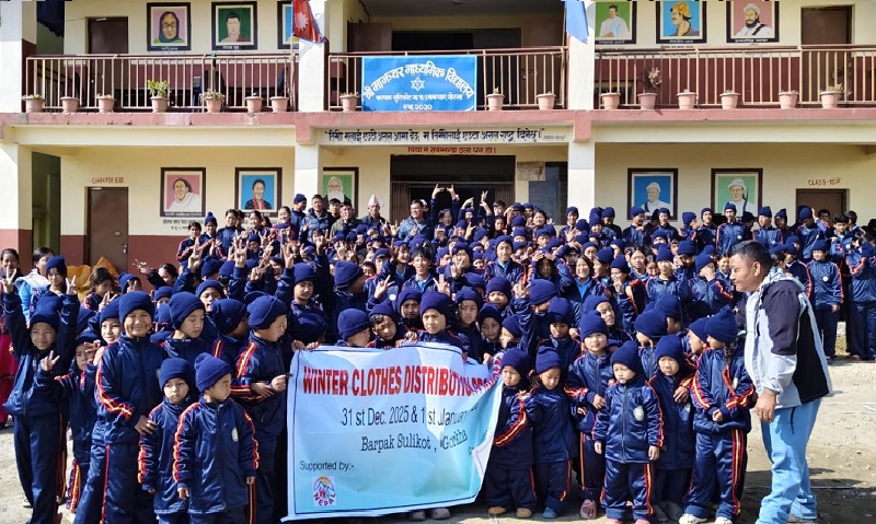 गोरखा, २० पुसः गोरखाको बारपाक सुलिकोट गाउँपालिकाभित्रका ७०६ बालबालिकालाई न्यानो कपडा वितरण गरिएको छ । विभिन्न सात विद्यालयमा अध्ययनरत बालबालिकालाई चिसोबाट जोगाउन जनालाई न्यानो कपडा वितरण गरिएको गाउँपालिकाका अध्यक्ष विष्णुप्रसाद भट्टले जानकारी दिनुभयो ।