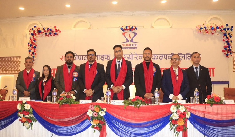 काठमाडौं, २८ पौष । सन नेपाल लाइफ इन्स्योरेन्स कम्पनी लिमिटेडको आठौँ तथा नवौं बार्षिक सााधारण सभा यही पौष २५ गते शुक्रवार, अमृतभोग केटरर्स प्रा.लि., कालिकास्थान, काठमाडांै सम्पन्न भएको छ ।