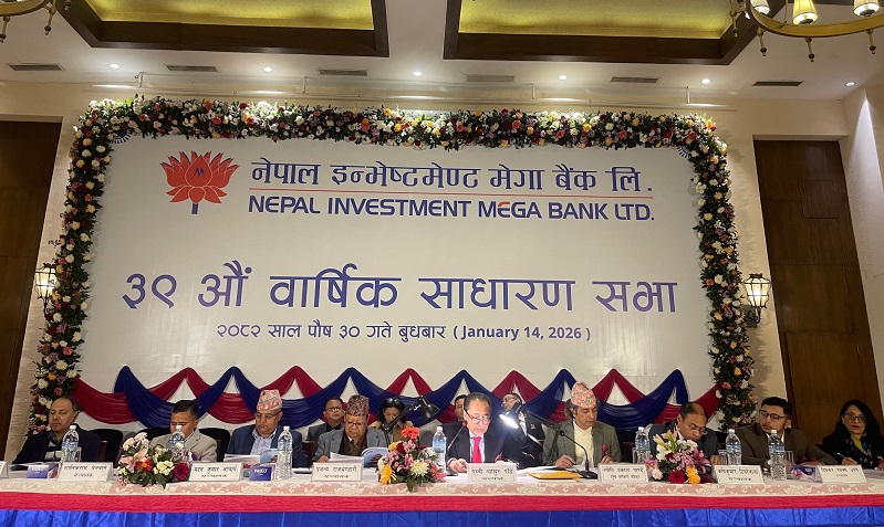 काठमाडौं, ३० पौष । नेपाल इन्भेष्टमेण्ट मेगा बैंक लिमिटेडले आफ्नो ३९औं वार्षिक साधारण सभा सफलतापूर्वक सम्पन्न गरेको छ ।