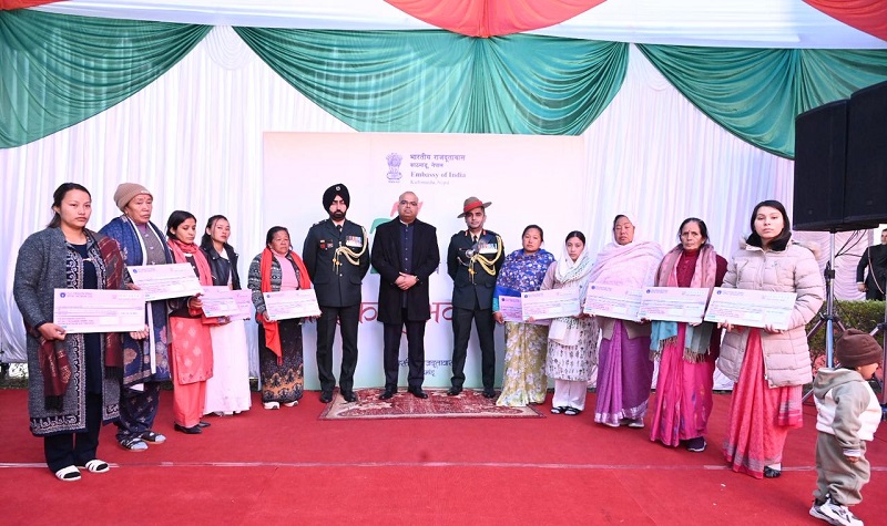 सो अवसरमा कार्यवाहक राजदूत पाण्डेले भारतीय सशस्त्र बलका दिवङ्गत सैनिकका श्रीमती र निकटतम् नातेदारलाई सम्मान गर्नुका साथै रु सात करोड २० लाख बराबरको एजीआइएफ (आर्मी ग्रुप इन्स्योरेन्स फन्ड) चेकहरु हस्तान्तरण गर्नुभएको थियो ।
