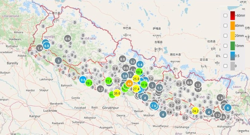 बागमती र गण्डकी प्रदेशका केही स्थानहरूमा तथा कोशी, लुम्बिनी, कर्णाली र सुदूरपश्चिम प्रदेशका केही स्थानमा हल्कादेखि मध्यम वर्षा भइरहेको छ ।