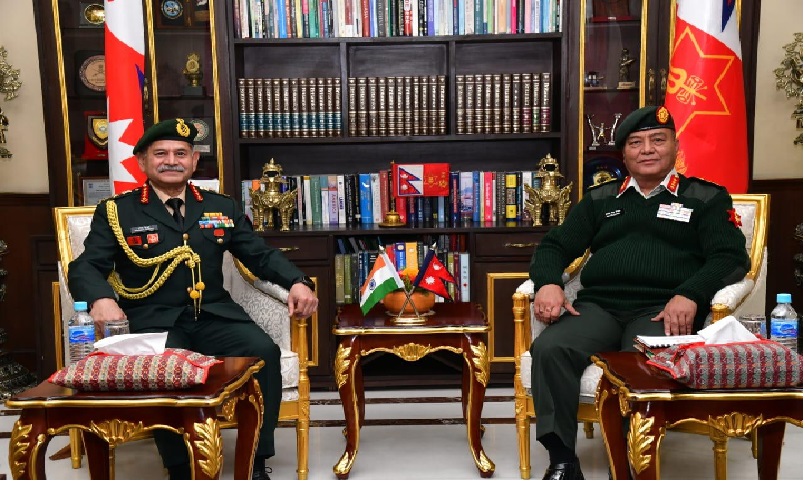 काठमाडौँ, ६ मङ्सिर : प्रधान सेनापति अशोकराज सिग्देल र नेपाल भ्रमणमा रहनुभएका भारतीय स्थल सेनाध्यक्ष उपेन्द्र द्विवेदी बीच दुई देशका सैनिकबीच पारस्परिक साझेदारी र हितमा केन्द्रित रहेर सैनिक मुख्यालय जङ्गी अड्डामा द्विपक्षीय वार्ता भएको छ ।
