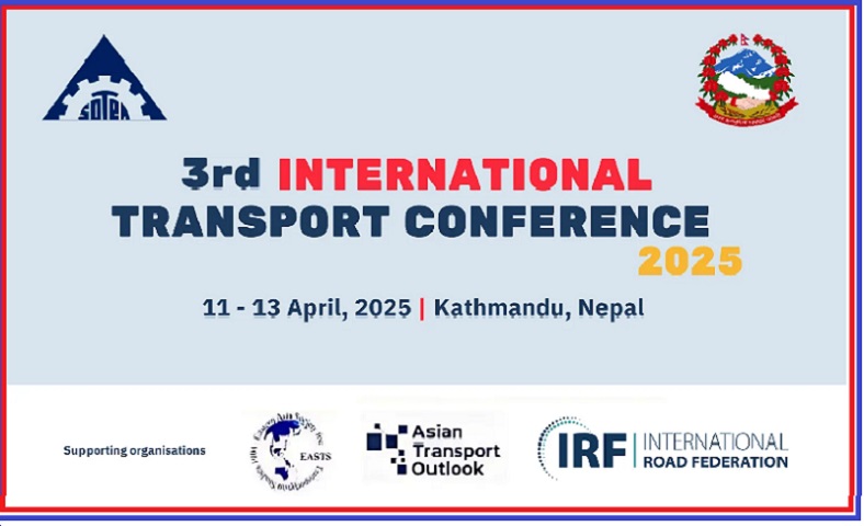 काठमाडौँ, २५ चैतः दिगो र सुरक्षित यातायातको नीति निर्माण तर्जुको पक्षपोषण गर्ने उद्देश्यले यही चैत २९ देखि ३१ गतेसम्म तेस्रो अन्तरराष्ट्रिय यातायात सम्मेलन–२०२५ आयोजना हुने भएको छ ।