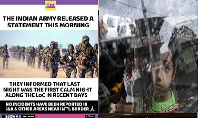 “काश्मीर र अन्तर्राष्ट्रिय सीमासँगका अन्य क्षेत्रमा रात धेरै हदसम्म शान्तिपूर्ण रह्यो”, भारतीय सेनाले भनेको छ, “हालैका दिनहरूमा पहिलो शान्त रातलाई सङ्केत गर्दै कुनै घटना रिपोर्ट गरिएको छैन ।”