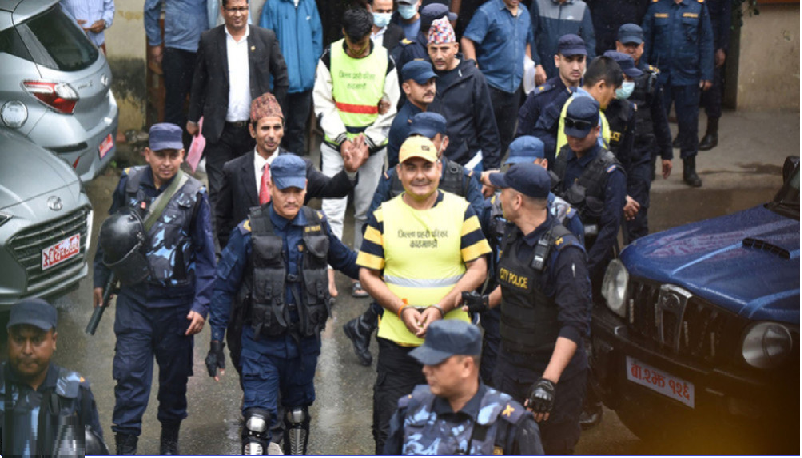 उहाँले भन्नुभयो, “जिल्ला अदालत काठमाडौँको आदेशअनुसार, दुर्गा प्रसाईं, सरोज गौतम, गोकर्ण शाही, डण्डपाणि रेग्मी, सुशील बराल, केशव बस्नेत र जीतबहादुर श्रेष्ठलाई डिल्लीबजार कारागार चलान गरिएको छ ।”