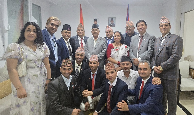 भेटका क्रममा प्रधानमन्त्रीका मुख्य सल्लाहकार एवम् एमालेका उपमहासचिव विष्णुप्रसाद रिमाल, स्पेनका लागि नेपाली राजदूत शनिल नेपाल, प्रवासी नेपाली मञ्च, अन्तरराष्ट्रिय कमिटीका सचिव एवं सङ्गठन विभाग प्रमुख हेम शेर्पा, युरोप महादेश कमिटीका संयोजक मुक्तबहादुर गुरुङ, मञ्चका स्पेन अध्यक्ष केदार ढुङ्गाना, मेड्रिड कमिटीका अध्यक्ष शिवराज सिग्देल र पोर्चुगलका अध्यक्ष दीपक क्षेत्रीलगायत सहभागी हुनुहुन्थ्यो ।