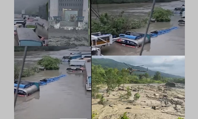 सामाजिक सञ्जालमा भिडियोसहित पोष्ट गरिएका सूचनामा चीनतिरबाट रसुवा नाका हुँदै ल्याइएका कैयौ विद्युतीय सवारी साधनहरु पनि बाढीले बगाएको जनाइएको छ। दर्जनौ मालवाहक ट्रकहरु पनि पानीमा डुबेका छन् । स्याप्रुबेसी जाने सडक र जलविद्युत आयोजनाहरुको खण्डखण्डमा पनि क्षति पुगेको छ ।