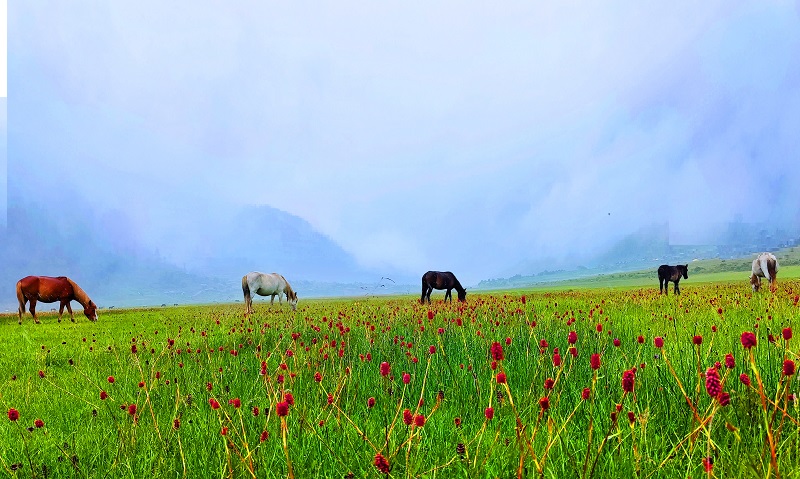 ढोरपाटन (बागलुङ), ३० असारः यतिबेला ढोरपाटन उपत्यकामा ढकमक्क फूलेका वनफूलले ढाकिएको छ । राता, पहेँला, बैजनी, गुलावी रङ्गमा फुलेका फुलसँगै हरियाली बनेको समथर मैदानले आन्तरिक तथा बाह्य पर्यटकको ध्यान खिचेको छ । एक दशक अगाडिसम्म ढोरपाटन घुम्न पुग्ने पर्यटक निकै कम थिए । जनैपूर्णिमामा ढोरबहार मन्दिरमा पूजा गर्न आउने भक्तजनबाहेक अन्य पर्यटक कमै पुग्थे । दर्शनका लागि पुगेको भक्तजनलाई फाँटैभरी फूलेको वनफूलले छुनै सकेको थिएन ।