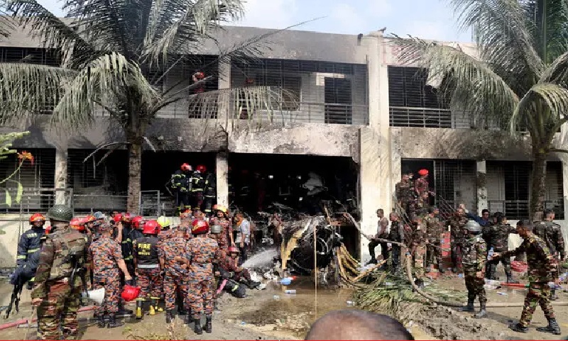 ढाका, ६ साउन (रासस/एएफपी) : बङ्गलादेशको एक स्कुलमा प्रशिक्षण लडाकू जेट दुर्घटना हुँदा मृतकको सङ्ख्या ३१ पुगेको छ। भएपछि मङ्गलबार परिवारहरू र शिक्षकहरू भेला भएका छन् । यो दशकौँको सबैभन्दा घातक विमान दुर्घटना हो ।