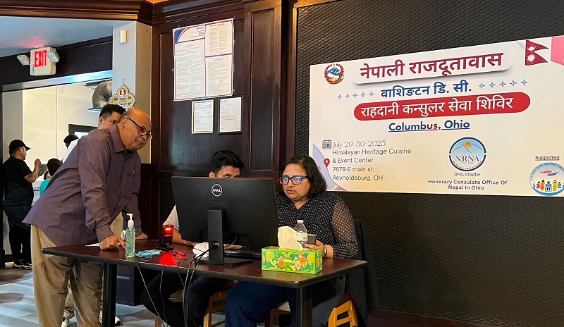 वाशिङ्टन डिसी, १६ साउनः नेपाली राजदूतवासले ओहायो राज्यको कोलम्वसमा विभिन्न सेवा प्रदान गर्ने उद्देश्यका साथ घुम्ति शिविर सञ्चालन गरेको छ । मङ्गलबार र बुधबार गरी आयोजना गरिएको घुम्ती शिविरमा करिब चार सय सेवाग्राहीले सेवा लिएको डिसीस्थित दूतावासले जानकारी दिएको छ ।