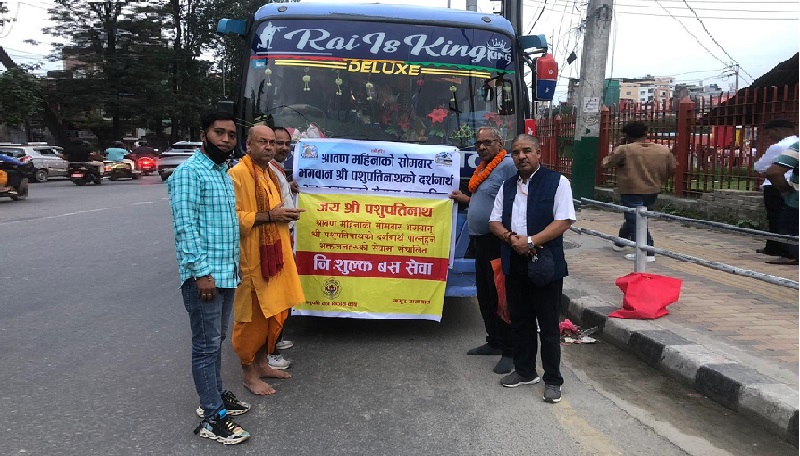 श्रावण महिनाको सोमबार पशुपतिनाथ मन्दिर दर्शन गर्न जाने भक्तजनहरुलाई सेवा पुर्याउन गीताप्रेस पुस्तक प्रचारप्रसार केन्द्र नेपालले बस सेवा विहान ५ बजे देखि संचालन गर्ने जानकारी दिएको छ ।
