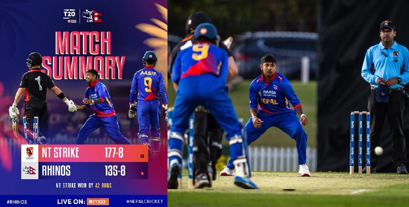 काठमाडौँ, ३० साउन : अष्ट्रेलियाको डार्विनमा जारी टप एण्ड टी–२० सिरिजमा नेपाल अष्ट्रेलियाको स्थानीय क्लब नर्दन टेरिटोरी स्ट्राइकरसँग पराजित भएको छ ।अष्ट्रेलियाको मरारा क्रिकेट ग्राउण्ड २ आज भएको आफ्नो उद्घाटन खेलमा नेपाल नर्दन टेरिटोरीसँग ४२ रनले पराजित भएको हो । नर्दन टेरिटोरीले जितको लागि दिएको एक सय ७८ रनको लक्ष्य पछ्याएको नेपाल निर्धारित २० ओभरमा ८ विकेट गुमाएर एक सय ३५ रनमा समेटियो ।नेपालका लागि कुशल मल्लले सर्वाधिक ३४ रन बनाए । त्यसैगरी गुल्शन झाले २६ तथा कप्तान रोहित पौडेलले २३ रन बनाए । नर्दन टेरिटोरीका लागि म्याट हामोन्डले तीन विकेट लिए भने टम एन्ड्रयुज र केन रिचार्डसनले समान दुई/दुई विकेट लिए । त्यस्तै हामिश मार्टिनले एक विकेट लिए ।त्यसअघि टस हारेर पहिला ब्याटिङको निम्तो पाएको नर्दन टेरिटोरीले निर्धारित २० ओभरमा आठ विकेट गुमाउँदै एक सय ७७ रनको योगफल बनाएको थियो । उसका लागि ओपनर डार्सी शर्टले सर्वाधिक ५१ रनको अर्धशतकीय पारी खेले ।त्यसैगरी टम एन्ड्रयुजले अविजित ३२ रन जोडे भने जोर्डन सिल्कले १९ रन बनाए । कोनर क्यारोलले १८, क्याडी म्याकमोनले १२ तथा जेक वेदराल्डले ११ रन बनाए । नेपालका लागि सन्दीप लामिछानेले तीन विकेट लिए भने शाहव आलमले दुई विकेट झारे । त्यस्तै गुल्शन झा, दीपेन्द्रसिंह ऐरी र कप्तान रोहित पौडेलले समान एक एक विकेट लिए ।नर्दन टेरिटोरीले सन् २०२३ मा भएको सिरिजको पहिलो संस्करणको उपाधि जितेको थियो । त्यस्तै गतवर्ष भने सेमिफाइनलसम्म पुगेको थियो । नेपालले अब भोलि बङ्गलादेश ‘ए’ टोलीसँग खेल्नेछ ।—