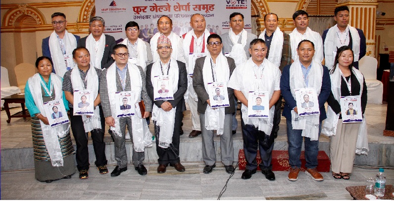 अध्यक्ष पदका उम्मेदवार शेर्पाले ‘पर्वतीय पर्यटनको विकास, संरक्षण र सम्बर्द्धनका लागि उम्मेदवारी’ भन्ने मूल नारासहित कार्ययोजना सार्वजनिक गर्नुभयो । अध्यक्षका उम्मेदवार शेर्पाको नेतृत्वमा वरिष्ठ उपाध्यक्षमा ईश्वरी पौडेल, प्रथम उपाध्यक्षमा काजी शेर्पा (स्पिडकाजी), द्वितीय उपाध्यक्षमा बोधराज भण्डारी, महासचिवमा राजेन्द्रबहादुर लामा, सचिवमा चन्दन थापा र कोषाध्यक्षमा ङिमा नुर्बु शेर्पा हुनहुन्छ । यसैगरी, सदस्य पदमा केदार न्यौपाने, थुप्देन शेर्पा, गोकुल थापा, मुलाल गुरुङ, माधवकुमार धमला, देण्डी शेर्पा, विक्रम कार्की, रिन्जे शेर्पा, देवेन्द्र डङ्गोल, डोल्मा लामा र निशा भोटेले उम्मेदवारी दिनुभएको छ ।