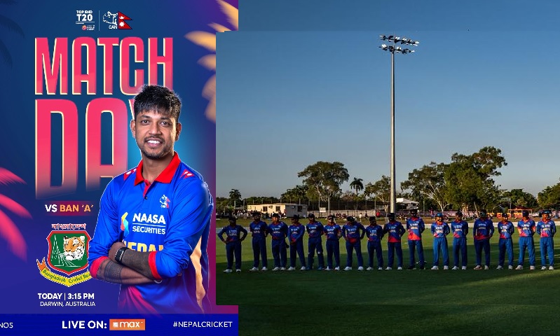 डार्विन(अष्ट्रेलिया), ३१ साउन । अष्ट्रेलियाको नर्दन टेरिटोरी क्रिकेट (एनटी)को आयोजनामा बिहिवारदेखि डार्विन शहरमा सुरु भएको टप इण्ड टी २० सेरिज क्रिकेट प्रतियोगिता अन्तरगत नेपाली राष्ट्रिय क्रिकेट टोलीले आज बंगलादेश ‘ए’ संग खेल्दै छ ।