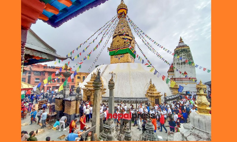 काठमाडौँ, ७ भदौ: स्वयम्भूमा जारी एकमहिने मेलामा हालसम्म करिब दुई लाख भक्तजनले दर्शन गरेका छन् । स्वयम्भू व्यवस्थापन तथा संरक्षण महासमितिका अनुसार श्रावण शुक्ल प्रतिपदादेखि भाद्रशुक्ल प्रतिपदासम्म लाग्ने एकमहिने (गुँला) पर्वका अवसरमा उक्त सङ्ख्यामा भक्तजनले मन्दिर दर्शन गरेका हुन् ।
