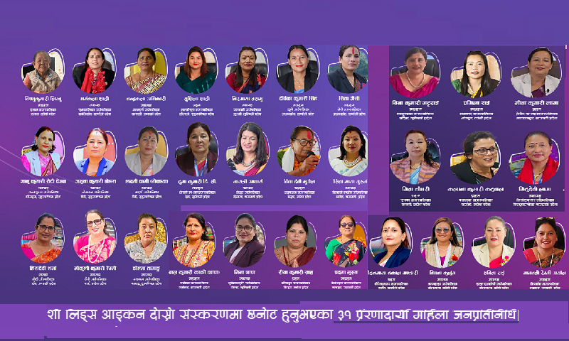 काठमाडौँ, ११ भदौ : स्थानीय तहमा निर्वाचित ३१ महिला जनप्रतिनिधि प्रेरणादायी सूचीमा परेका छन् । महिलाको सुकर्मलाई सञ्चार गर्दै नेतृत्व क्षमताको पहिचान गर्ने उद्देश्यसहित सञ्चालन हुँदै आएको ‘शी लिड्स आइकन’ कार्यक्रमअन्तर्गत दोस्रो संस्करणका लागि ३१ प्रेरणादायी महिला जनप्रतिनिधि छनोट भएका हुन् ।