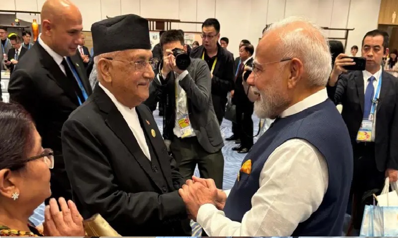 एससीओमा भाग लिन तियान्जिन पुगेका भारतीय प्रधानमन्त्री मोदीसँग पनि ओलीको भेट भएको थियो।