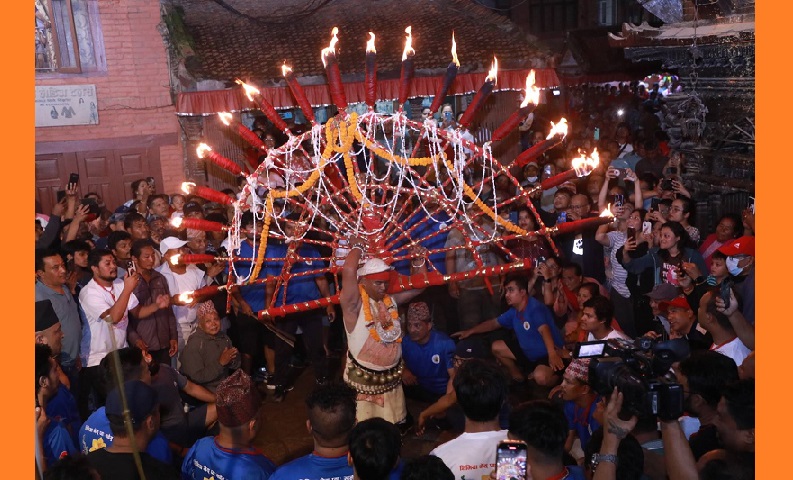 भक्तपुर, २३ भदौः साँझ ढल्किँदै थियो । नेपाल संवत् तिथिबमोजिम ञंलाथ्व पुन्हि अर्थात् इन्द्रजात्राको भोलिपल्ट भाद्र शुक्ल पूर्णिमाको साँझ मध्यपुरथिमि नगरपालिका–४ र ५ को सिमाना दिगुटोलस्थित दिगु भैरब अगाडि डबलीमा मानिसहरुको भीड बाक्लिँदैै थियो । बेलाबेलामा परेको वर्षाले भीड तितरबितर भए पनि पानी रोकिने बित्तिकै भीड उत्तिकै हुन्थ्यो ।