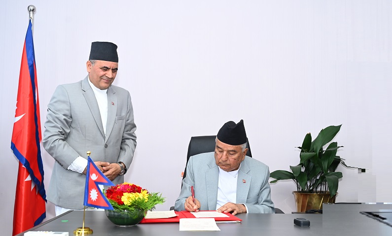 काठमाडौँ, ८ असोज : राष्ट्रपति रामचन्द्र पौडेलले मतदाता नामावली ऐन, २०७३ लाई संशोधन गर्न बनेको अध्यादेश जारी गर्नुभएको छ ।