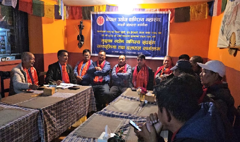 मुस्ताङ जिल्ला उद्योग वाणिज्य संघका तत्कालिन अध्यक्ष खगेन्द्र तुलाचनले पदबाट राजिनामा दिएपछि लामो समय देखि जिल्लामा महासंघको नयाँ कार्यसमिति गठन हुन सकको थिएन । नेपाल उद्योग वाणिज्य महासंघका गण्डकी प्रदेश अध्यक्ष अमृतप्रसाद भट्टचनको अध्यक्षता तथा महासंघका अध्यक्ष चन्द्रप्रसाद ढकालको प्रमुख आतिथ्यमा हालै जोमसोममा सम्पन्न भेलाले तदर्थ समिति गठन गरेको हो ।