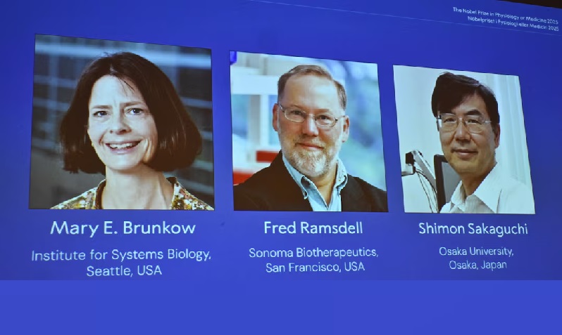 संयुक्त राज्य अमेरिकाका मेरी ब्रन्को, फ्रेड र्‍याम्स्डेल र जापानका शिमोन साकागुचीलाई सन् २०२५ को पुरस्कार दिने निर्णय भएको समितिले सोमवार जनाएको हो । उहाँहरूलाई शरीरको प्रतिरोध प्रणालीमा ‘रेग्यलेटरी टी–सेल’ भनिने विशेष कोषहरू रक्षकका रूपमा उपस्थित हुने तथ्य पत्ता लगाउन गरेको विशेष योगदानका लागि पुरस्कृत गरिएको हो ।