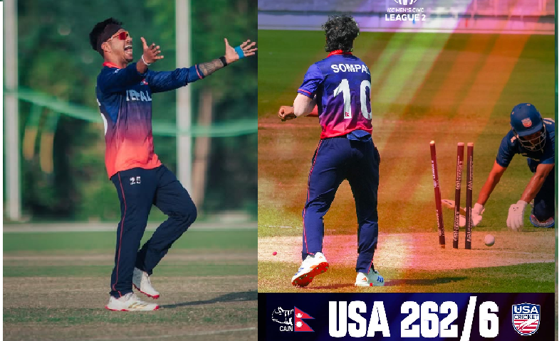 दुबाई(युएई), ९ कार्तिक । आइसीसी विश्वकप लिग टु अन्तर्गत त्रिकोणात्मक श्रृखलाको पहिलो खेलमा अमेरिकाले नेपाललाई २ सय ६३ रनको चुनौती दिएको छ।