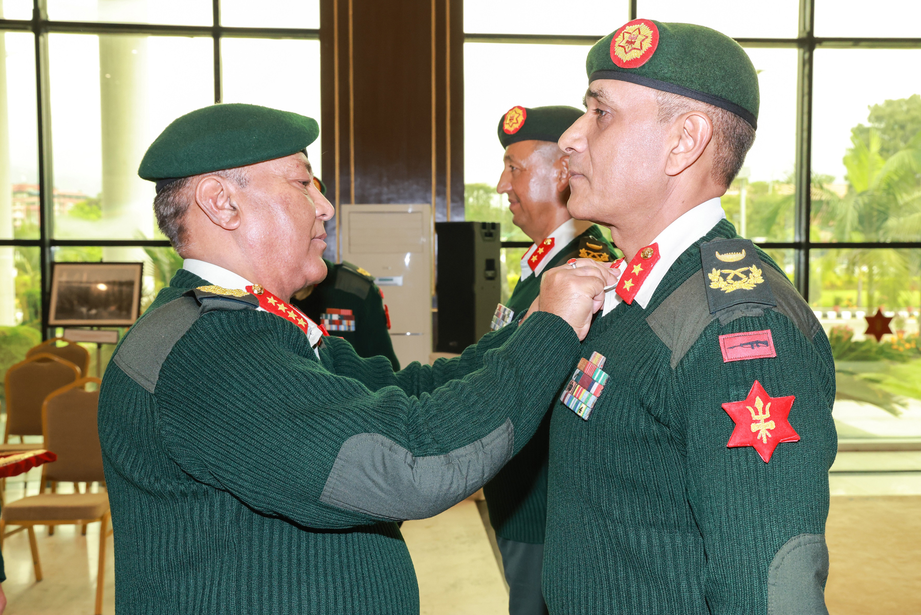 प्रधान सेनापतिले सोही अवसरमा महासेनानी दर्जामा पदोन्नति हुनुभएका पाँचजना प्रमुख सेनानीलाई समेत दर्ज्यानी चिन्ह प्रदान गर्नुभएको सैनिक जनसम्पर्क तथा सूचना निर्देशनालयले जनाएको छ ।