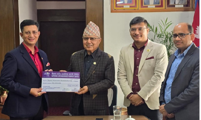 काठमाडौं, १८ कार्तिक । नेशनल लाईफ इन्स्योरेन्स कम्पनीले नेपाल सरकारद्धारा स्थापित भौतिक पूर्वाधार पुनर्निर्माण कोषमा आर्थिक सहयोग प्रदान गरेको छ ।