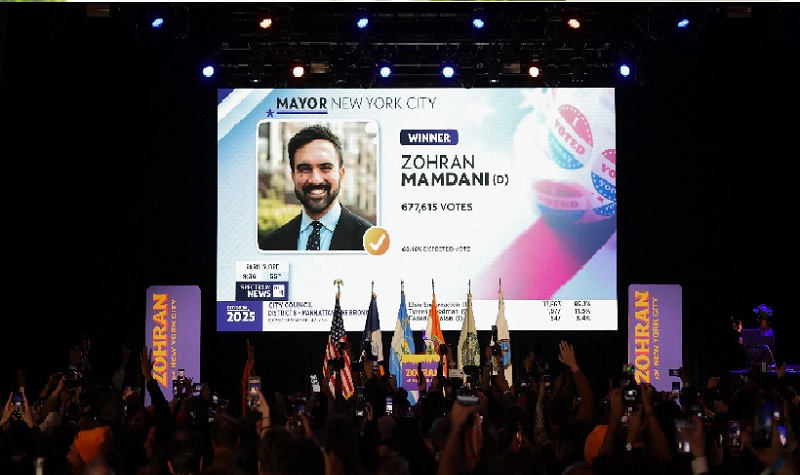 न्युयोर्क, १९ कात्तिक (रासस/एएफपी) : अमेरिकाको राजनीतिक केन्द्र मानिने न्युयोर्क सहरमा मङ्गलबार भएको निर्वाचनमा युवा वामपन्थी नेता जोहरान ममदानीले मेयर पदमा ऐतिहासिक विजय हासिल गर्नुभएको छ । यो परिणामले न्युयोर्कको राजनीतिक दिशा परिवर्तन गरेको मात्र नभई सन् २०२६ को मध्यावधि निर्वाचनअघि राष्ट्रपति डोनाल्ड ट्रम्पका लागि प्रारम्भिक चेतावनीको रूपमा समेत देखिएको छ ।